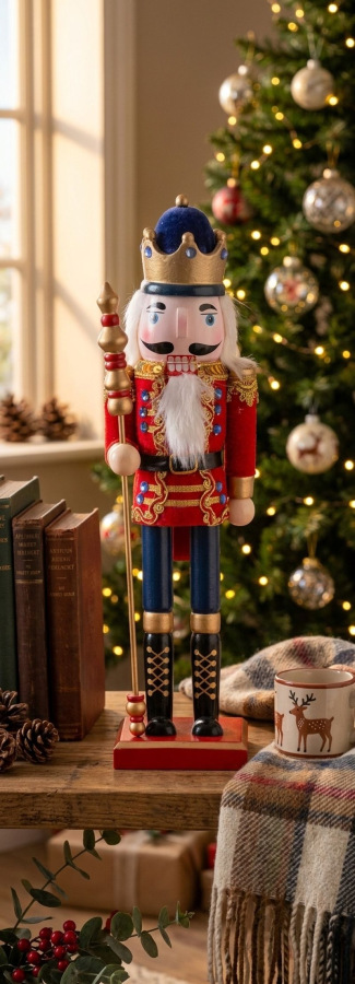 Krásny drevený luskáčik s korunou dotvorí čarokrásnu atmosféru Vianoc vo vašom domove. Je vysoký 38 cm a slúži na dekoračné účely. Má krásne detaily, dlhú bradu a peknú korunu.