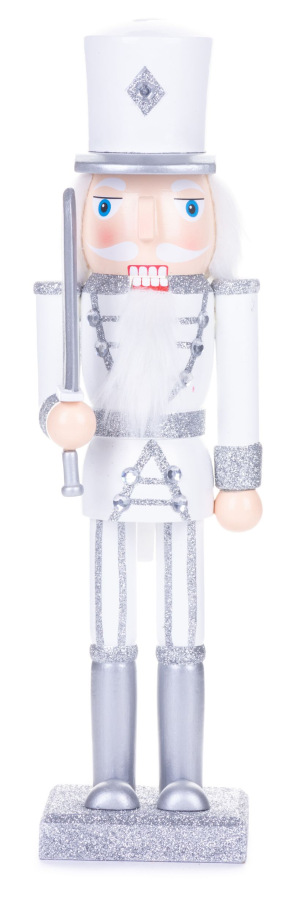 Krásny drevený strieborný Luskáčik dotvorí čarokrásnu atmosféru Vianoc vo vašom domove. Je vysoký 25 cm a slúži na dekoračné účely. Má krásne detaily, dlhú bradu a vysoký klobúk.