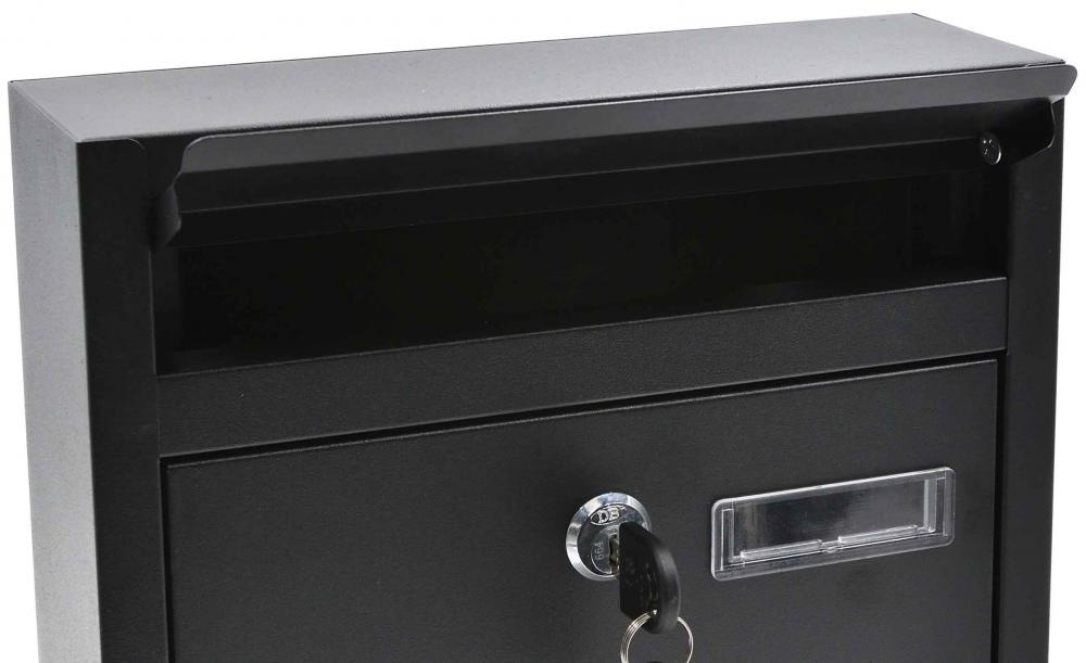 Poštová schránka je vyrobená z pozinkovanej ocele , ktorá ju dokonale chráni pred nepriaznivými poveternostnými podmienkami . Schránka má krytý vstup, klapka s miernou strieškou účinne chráni obsah krabice pred dažďom, zatiaľ čo ventilačné otvory umožňujú prirodzenému odparovaniu vlhkosti, ktorá sa môže vo vnútri schránky nachádzať. Slúžia tiež ako kukátko, cez ktoré môžeme skontrolovať, či v schránke nie je nejaká korešpondencia. Dvierka, ktoré sa otvárajú vpredu, majú okno, do ktorého môžete umiestniť menovku.
