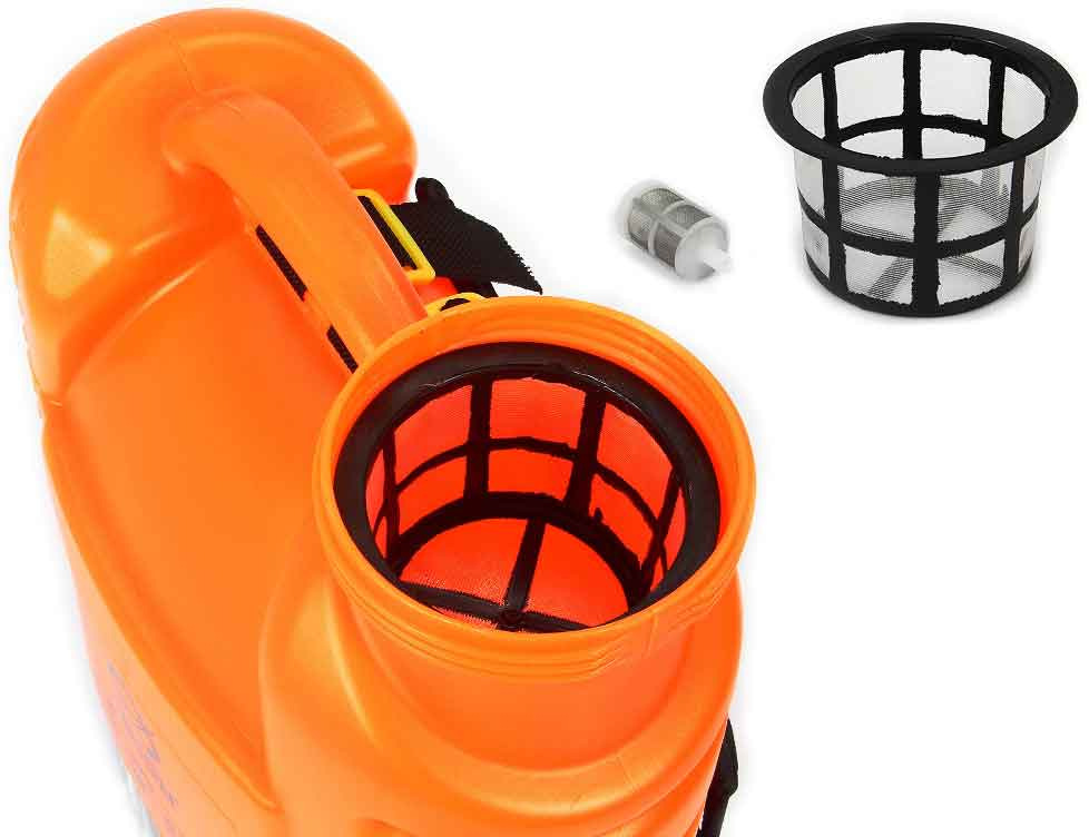 Postrekovač je vybavený dvoma filtrami. Jeden väčší pri plniacom otvore, ktorý chráni nádrž pred zbytočnými nečistotami. Druhá menšia je umiestnená v strede nádrže, takže z valca nevyteká žiadna nečistota.
