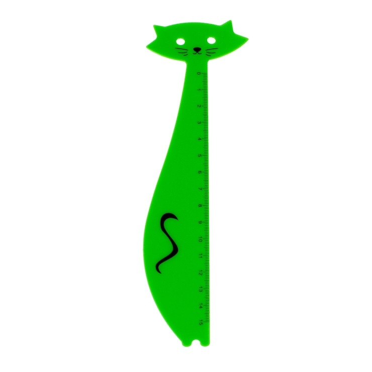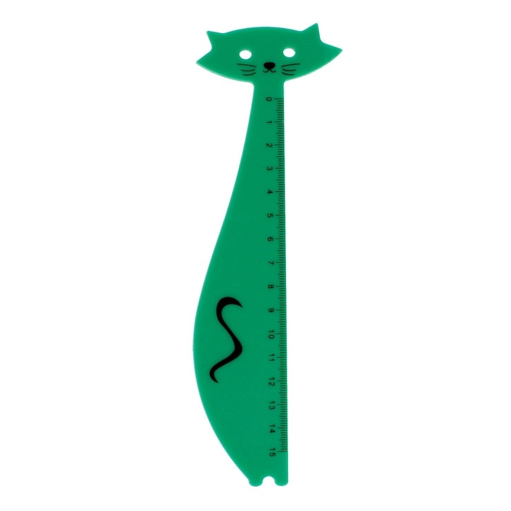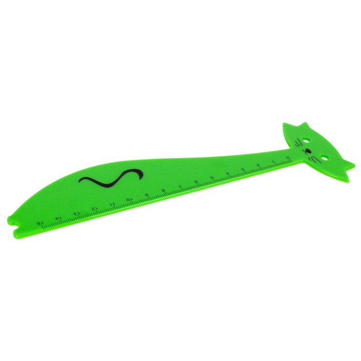 Pravítko z odolného plastu so zaoblenými koncami pre bezpečnosť vášho dieťaťa. brObsah balenia 15 cm pravítko kočka. Tmavozelené a bledozelené. Cena za 1 kus. Výrobok je vyrobený z plastu.