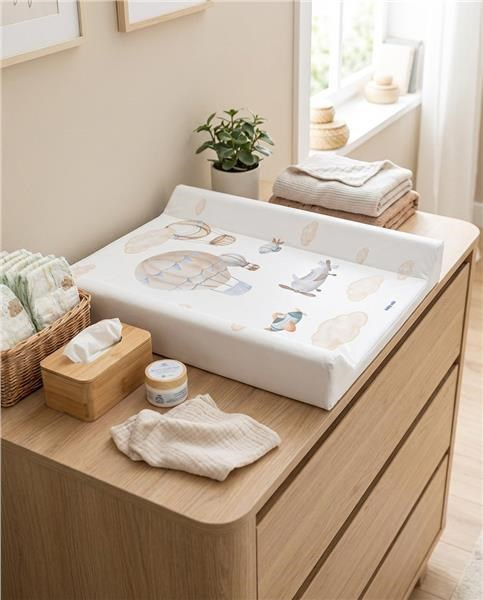 Tento konkrétny prebaľovací pult je vybavený spevnenou doskou a špeciálnymi kolíkmi, ktoré zabraňujú posúvaniu, čo ho robí stabilným a bezpečným pri používaní. Vďaka dôrazu na hygienu, bezpečnosť a pohodlie je nenahraditeľný pri každodennej starostlivosti o dieťa.