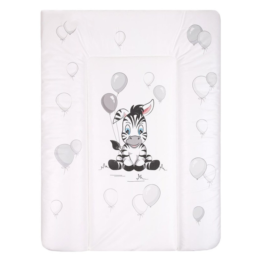 Praktická mäkká přebalovací podložka New Baby z nepromokavého, plastového materiálu s obrázkem zebry v příjemných pastelových barvách. Rozměr: cca 50x70 cm, tloušťka cca 4 cm.