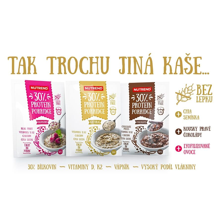 Lahodná proteínová ovsená kaša, ktorá obsahuje 30% mimoriadne kvalitné bielkoviny (mliečny proteínový izolát), je bohatá na vlákninu, bezlepková a ľahko stráviteľná. Tým však zoznam jej benefitov zďaleka nekončí - obsahuje vápnik, vitamín K i toľko potrebný vitamín D. Stačí iba zaliať vodou a za 2 minúty je kaša hotová. Proteínová ovsená kaša sa stáva jednou z najobľúbenejších možností rýchlo pripravené raňajky, ale aj vyhľadávanou formou desiaty v priebehu dňa. Vhodná kombinácia živín vás nielen nasýti, ale dodá vhodný pomer všetkých živín. Protein Porridge od spoločnosti Nutrend je bohatá na vlákninu a obsahuje výhradne bezlepkové suroviny, vďaka ktorým je ľahko stráviteľná. Vďaka tejto kašu dodáte svojmu telu veľké množstvo bielkoviny, ktorej zdrojom je vysoko kvalitný mliečny proteín (izolát). PROTEIN Porridge od spoločnosti Nutrend je ďalej bohatá na chia semienka a dodá vášmu telu unikátnu zmes vitamínov a minerálov, medzi ktorými nájdete najmä vitamín D a vitamín K, a ďalej tiež vysoké množstvo vápnika. - 30% bielkoviny (mliečny proteínový izolát)