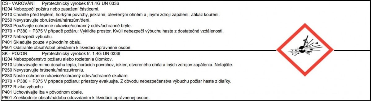 Prskavky 28 cm patria do kategórie zábavná pyrotechnika - prskavky. Prskavky po zapálení začnú horieť a prskať. Dĺžka a intenzita horenia a prskanie je určená dĺžkou prskavky. Cena je za celú krabičku, ktorá obsahuje 10 ks prskaviek. Bezpečnostné informácie a informácie o umiestení: Iba na vonkajšie použitie. Použite jednotlivo nad nehorľavým povrchom. Zapáľte koniec prskavky. Držte prskavku mimo tela a horľavých materiálov. Nevdychujte dym. Zvyšky spálenej prskavky sú horúce, vložte ich napríklad do vedra s vodou. V prípade, že výrobok zlýhal alebo nefungoval úplne, počkajte 15 min. a potom ponorte výrobok na min. 2 hodiny do vody. Následne ho zlikvidujte ako komunálny odpad. Pyrotechnický výrobok tr.1.4G UN 0336.