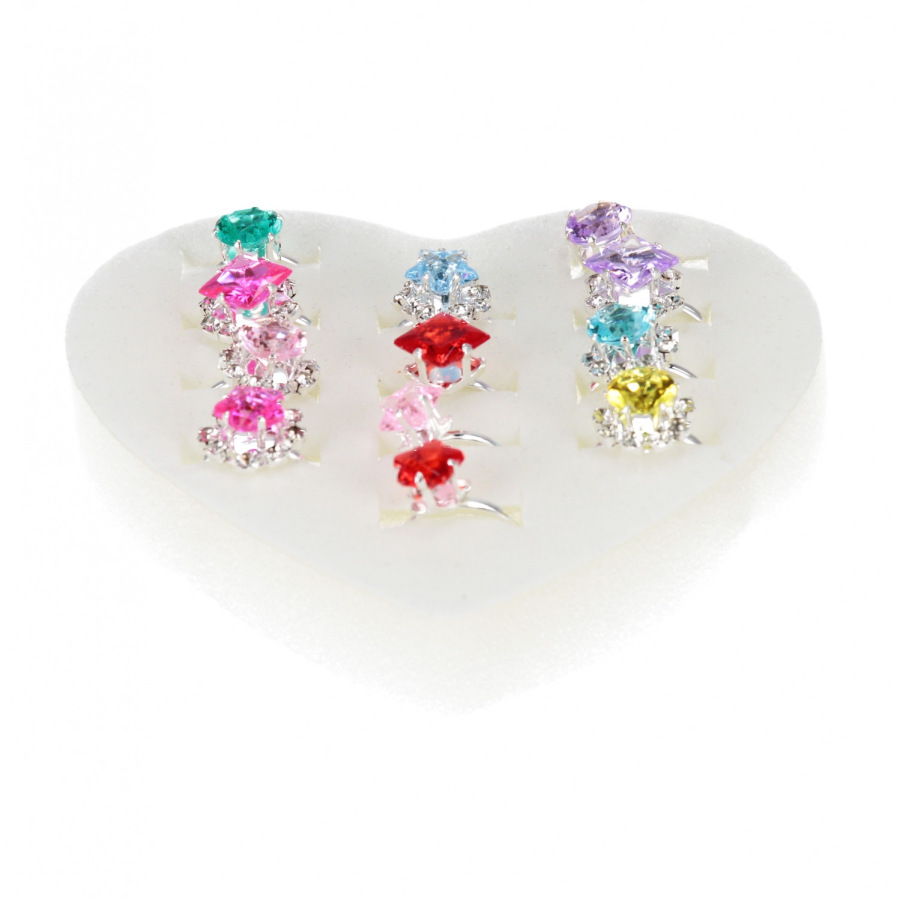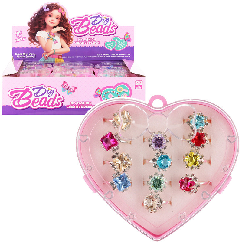 Prstienky v krabičke, krabička obsahuje 12 prstienov. Dodáva sa vo viacerých prevedeniach. Balené v boxe po 12 ks. Cena je za krabičku. Vhodné pre deti vo veku 3+ rokov.