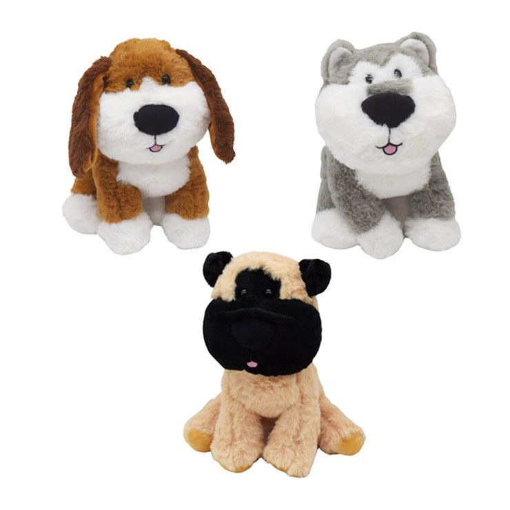Plyšový 22cm sediaci psík. Možnosť výberu z troch druhov - sivo-biely, hnedo-biely alebo hnedo-čierny. Cena je za 1 kus. Vhodné pre deti 3+.
