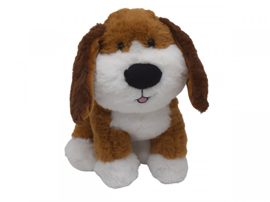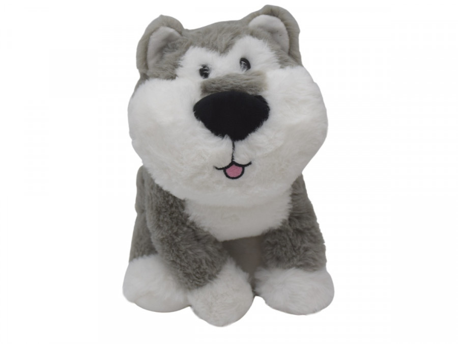 Plyšový 22cm sediaci psík. Možnosť výberu z troch druhov - sivo-biely, hnedo-biely alebo hnedo-čierny. Cena je za 1 kus. Vhodné pre deti 3+.