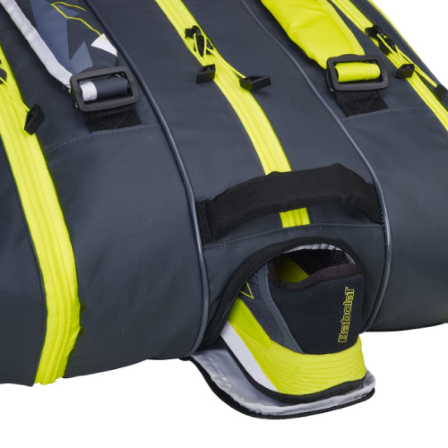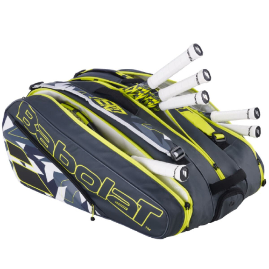 Všestranná tenisová taška Babolat Pure Aero X12 2023 je vďaka svojmu prevratnému dizajnu a radu funkcií jedným z najpredávanejších modelov. Táto priestranná taška má 3 priehradky. Hlavná priehradka pojme až 6 rakiet a všetko príslušenstvo, ktoré potrebujete, aby ste na kurte zažiarili. Ďalšie 2 priehradky (pre 2 a 4 rakety) sú izolované, aby chránili vaše struny pred teplotnými výkyvmi. Model RH12 Pure Aero je navrhnutý tak, aby spĺňal potreby aj tých najnáročnejších hráčov, a je vybavený 2 bočnými vreckami na drobnosti. - až pre 12 tenisových rakiet bez obalu
