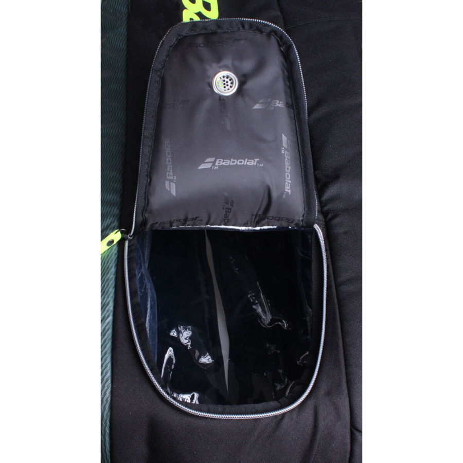 Všestranná tenisová taška Babolat Pure Aero X6 je vyrobená v modernom športovom dizajne z obzvlášť odolného polyesteru. Táto priestranná taška má 2 hlavné priehradky až pre 6 tenisových rakiet a ďalšie nevyhnutné vybavenie na kurt, dve bočné vrecká na zips pre drobnosti a jedno oddelené vrecko na topánky. Vodoodpudivá vrstva umožňuje vode stekať po povrchu škridly bez toho, aby do nej prenikla, a zaisťuje tak optimálnu ochranu vášho vybavenia. - až pre 6 tenisových rakiet bez obalu