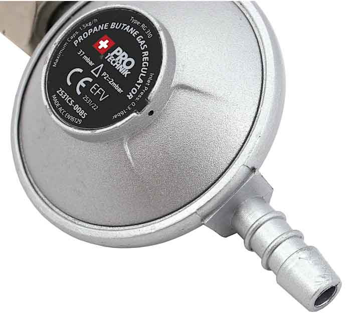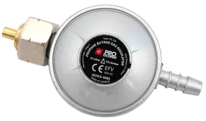 Nízkotlakový regulátor plynu, je jednostupňové zariadenie určené na reguláciu tlaku plynu PROPÁN-BUTÁN. Ide o komponent potrebný pre správnu prevádzku domácich plynových spotrebičov pripojených k plynovým fľašiam. Toto zariadenie vyhovuje norme EN16129 a je vybavené bezpečnostným ventilom, ktorý sa aktivuje, keď spotreba plynu pripojeného zariadenia prekročí maximálnu kapacitu reduktora. Model A310 je prispôsobený na valec s manuálnym otváracím ventilom a pripojením 21,8 x 1,14L a výstupný tlak je stabilizovaný na 37mbar. Značka „EFV“ je umiestnená na vrchnej časti redukcie, ktorá označuje prítomnosť bezpečnostného prvku.