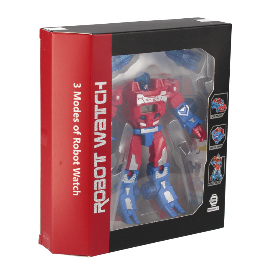 Robot 3 v 1, sa dá niekoľkými pohybmi premeniť na auto alebo hodinky. Má rozmery 15x12x4cm. Cena je za kus. Vhodné pre deti 6+.