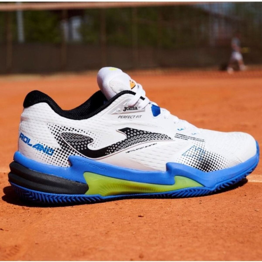 Pánske tenisové topánky JOMA Roland Men 2402 sú navrhnuté pre pravidelných a výkonnostných hráčov a sú vhodné pre antukový povrch. Zvršok je vyrobený z ľahkého a priedušného nylonu s perforáciou VTS, aby topánky poskytovali čo najlepšie odvetrávanie. Na dosiahnutie potrebného prispôsobenia sa nohe je na strategických miestach tepelne utesnený syntetický materiál JOMA SPORTECH. Tomu dopomáha aj spevnený strih s polstrovaným jazykom a šnurovaním PERFECT FIT. V špičke sa nachádza vstrekovaná guma technológie PROTECTION na jej spevnenie a väčšiu ochranu pri náraze. Medzipodrážka je vyrobená z ľahkého, pružného phylonu s technológiou STABILIS pre maximálne odpruženie, stabilitu a pohodlie pri hre. Podošva DURABILITY je vyrobená z odolnej gumy, ktorá poskytuje vysokú úroveň odolnosti vyžadovanú na kurtoch aj s tvrdým povrchom.