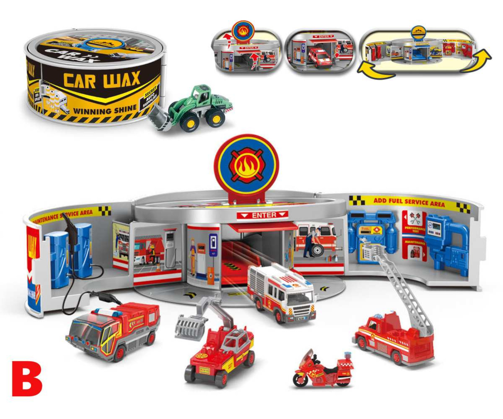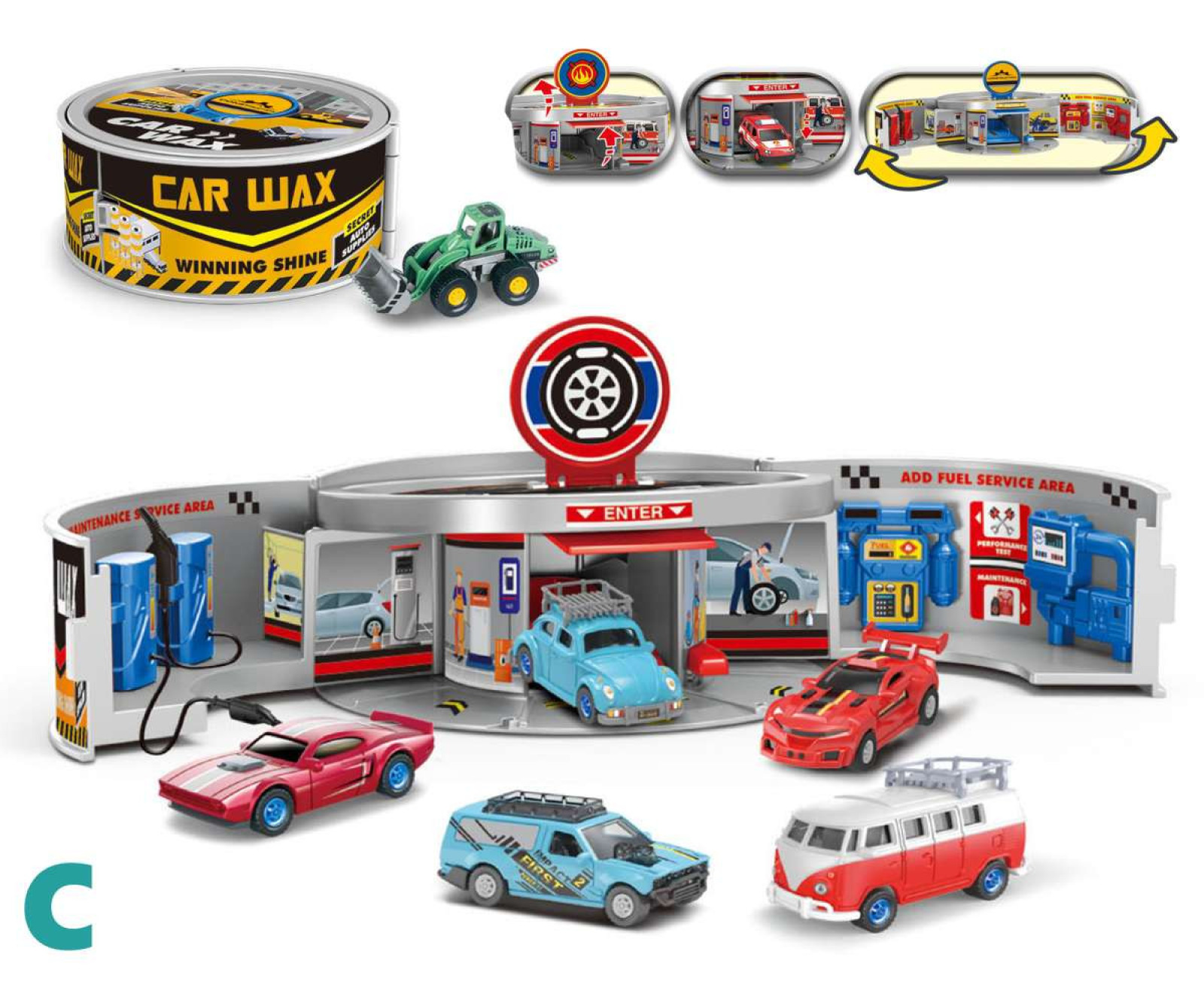 Rozkladacie parkovisko v plechovke, ktorú si deti môžu jednoducho rozložiť a začať hru. Balenie obsahuje otváraciu garáž, tankovacie stojany, nálepky a autíčko. Možnosť výberu zo štyroch druhov. Cena je za kus. Vhodné pre deti vo veku 3+ rokov.