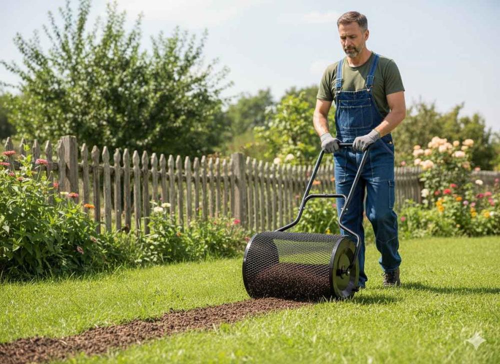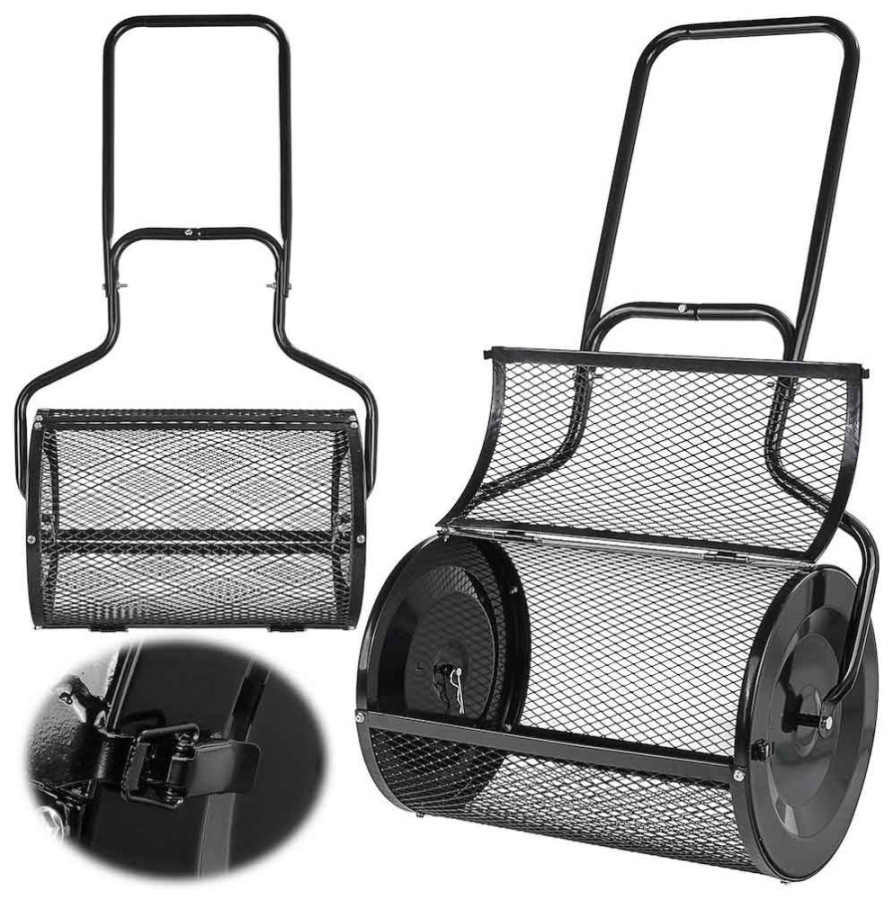Vďaka valcovitému dizajnu a pohodlnému systému otvárania dvierok umožňuje rovnomerné rozloženie hnojiva, piesku alebo kompostu na veľké plochy – bez námahy a bez zašpinenia rúk.