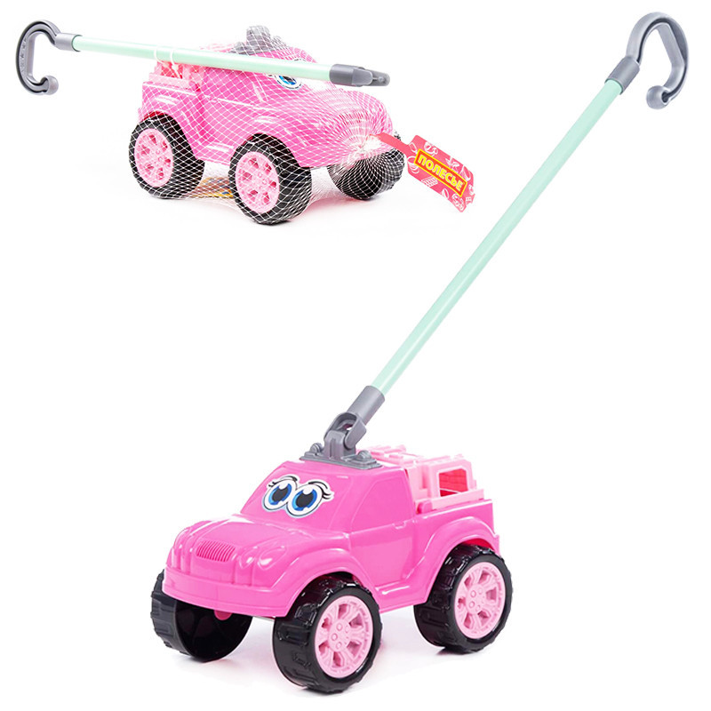 Ružové autíčko s rúčkou, má rozmery 608х153х154mm. Cena je za kus. Vhodné pre deti vo veku 3+.