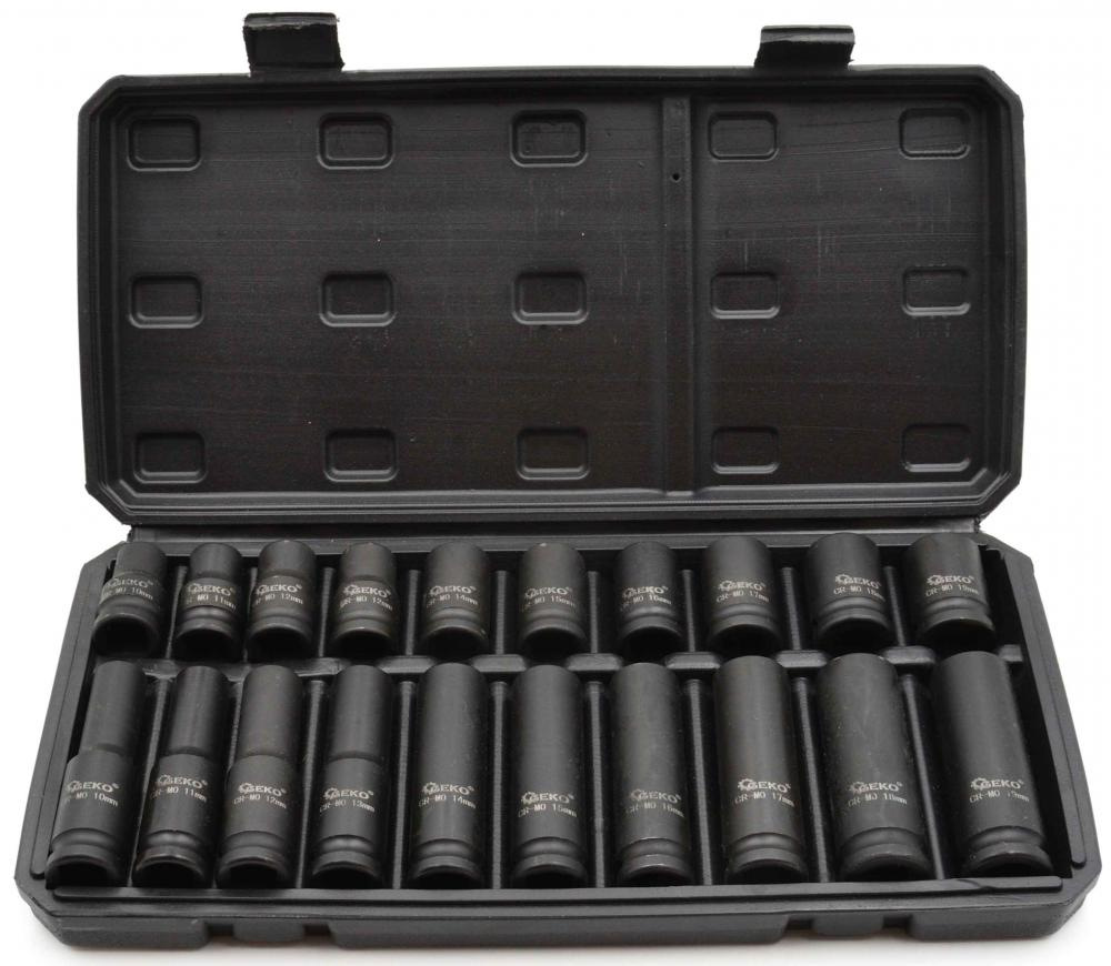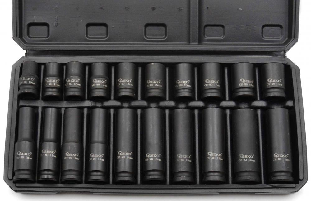 Sada 1/2" úderových hlavíc krátkych a dlhých 10-19 mm, 20-dielna sada v kazete, GEKO