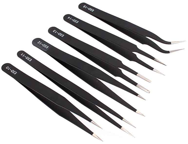 Antistatická pinzeta 12-14cm na vykonávanie presného zdvíhania a presúvania malých prvkov. Ideálne pre použitie v elektronike, šperkoch, kozmeteológii, modelovaní, akváriách, domácnosti a mnohých ďalších oblastiach. Sada obsahuje pinzetu rôznych tvarov a veľkostí pre všestranné použitie. Pinzety majú hrúbku 0,15 mm