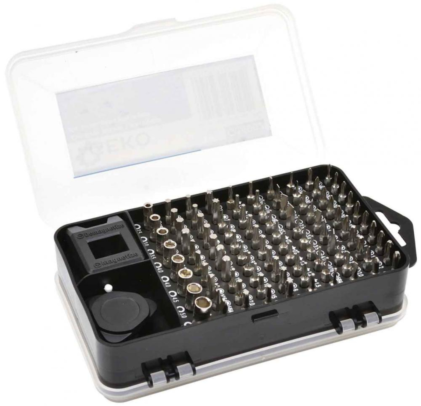 Sada 100 kusov bitov vyrobená z vystuženej uhlíkovej ocele. Na použitie s elektrickým náradím. Sada je zabalená v praktickom plastovm kufríku.