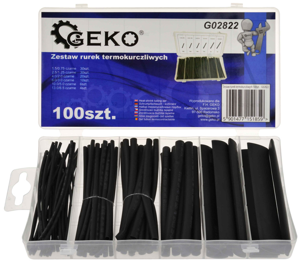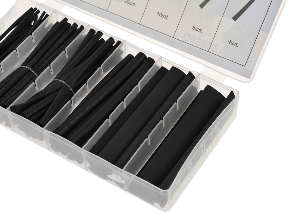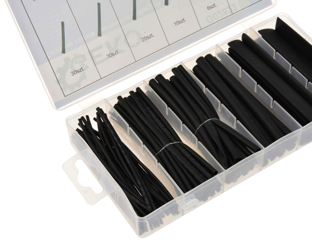 Sada čiernych termosťahovacích trubkových izolácii, 100-dielna sada, GEKO