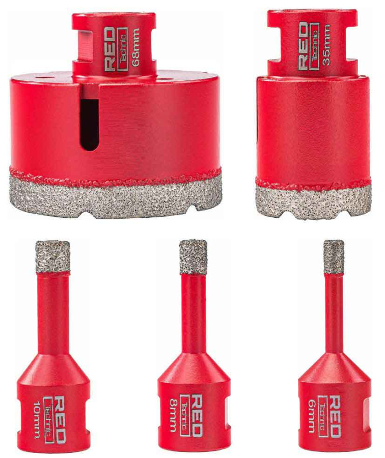 Sada diamantových koruniek, závit M14, rozmery 6, 8, 10, 35, 68 mm, RED TECHNIK