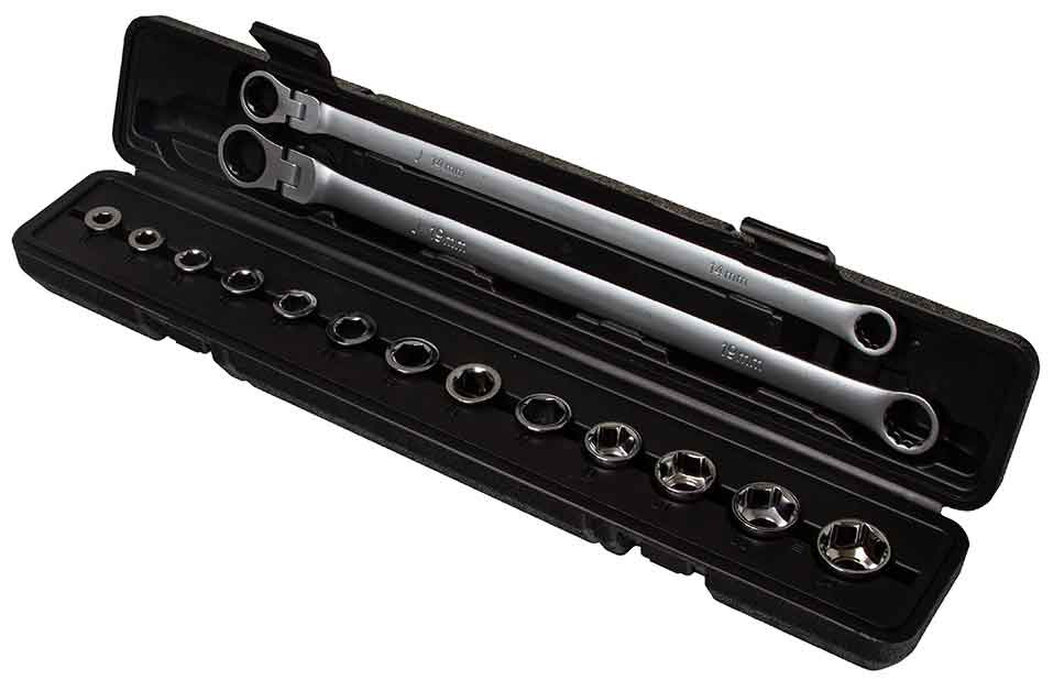 Sada dlhých račňových kľúčov s kĺbom, 15-dielna, 8 - 24 mm v kufríku