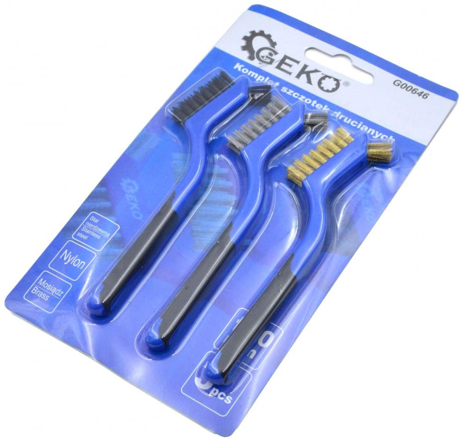 Sada 3 drôtených kefiek GEKO. Určené na všetky druhy čistenia a škrabania . Odolná plastová rukoväť.