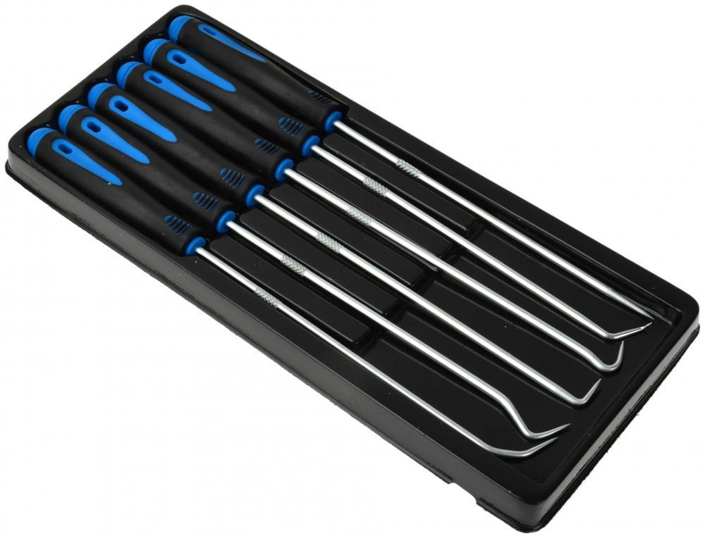 6-dielna háčiková súprava. Ideálne na odstránenie olejových tesnení, O-krúžkov, závlačiek atď.