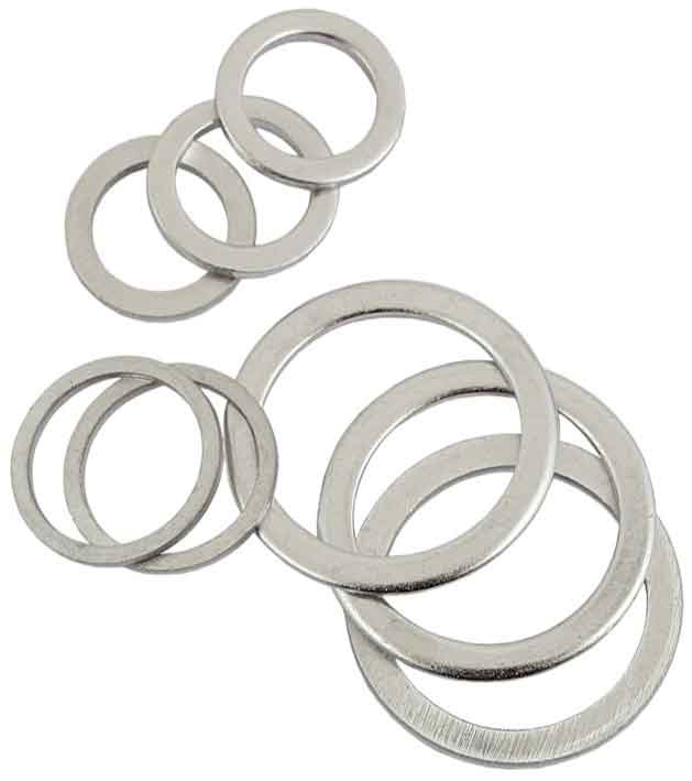 Sada 300 hliníkových podložiek v 30 rôznych veľkostiach.