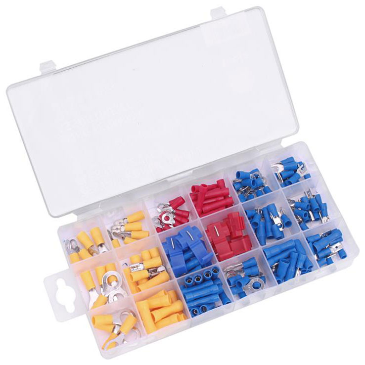 Sada pozostáva zo 160 prvkov vrátane elektrických koncoviek a konektorov, ktoré sú potrebné na vytvorenie elektrických konektorov v rôznych inštaláciách. Výrobky je možné použiť v rôznych meradlách káblov, vďaka čomu sú univerzálne v použití. Všetko je zabalené v praktickom a praktickom plastovom organizéri s priehradkami, ktoré uľahčujú oddelenie komponentov podľa veľkosti a typu. Sada obsahuje krúžkové koncovky, samčie a samičie konektory, káblové konektory, rýchlospojky a trubicové a rydlové koncovky, ktoré sú prispôsobené na prácu s káblami rôznych prierezov.