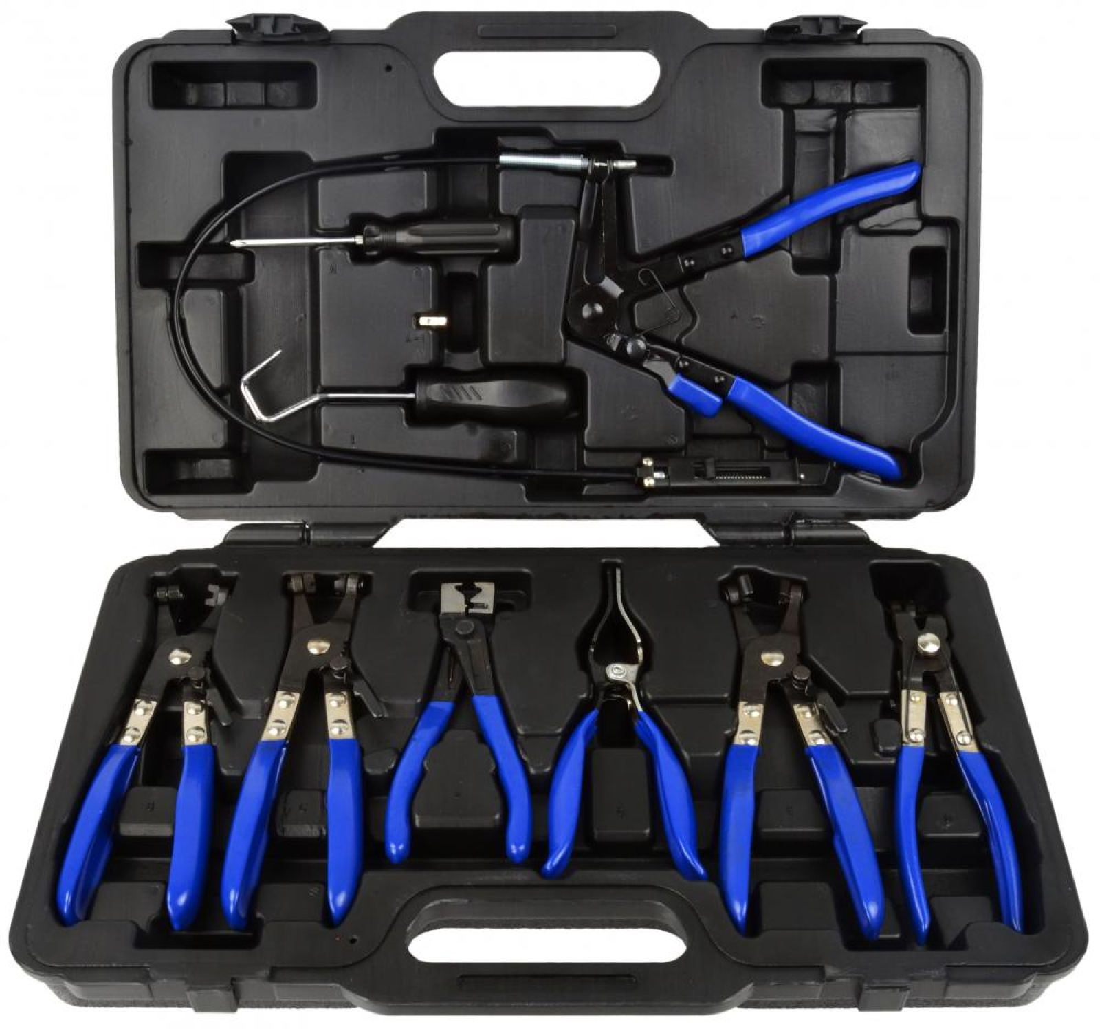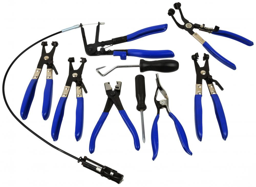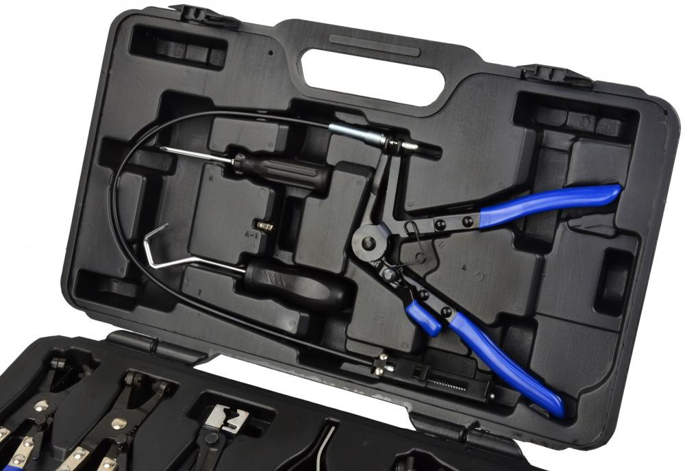 Bohatá sada klieští umožňuje montáž a demontáž pásových svoriek, svoriek krytov spojov, svoriek click a click-r, ako aj klieští na demontáž palivových a vákuových vedení atď.