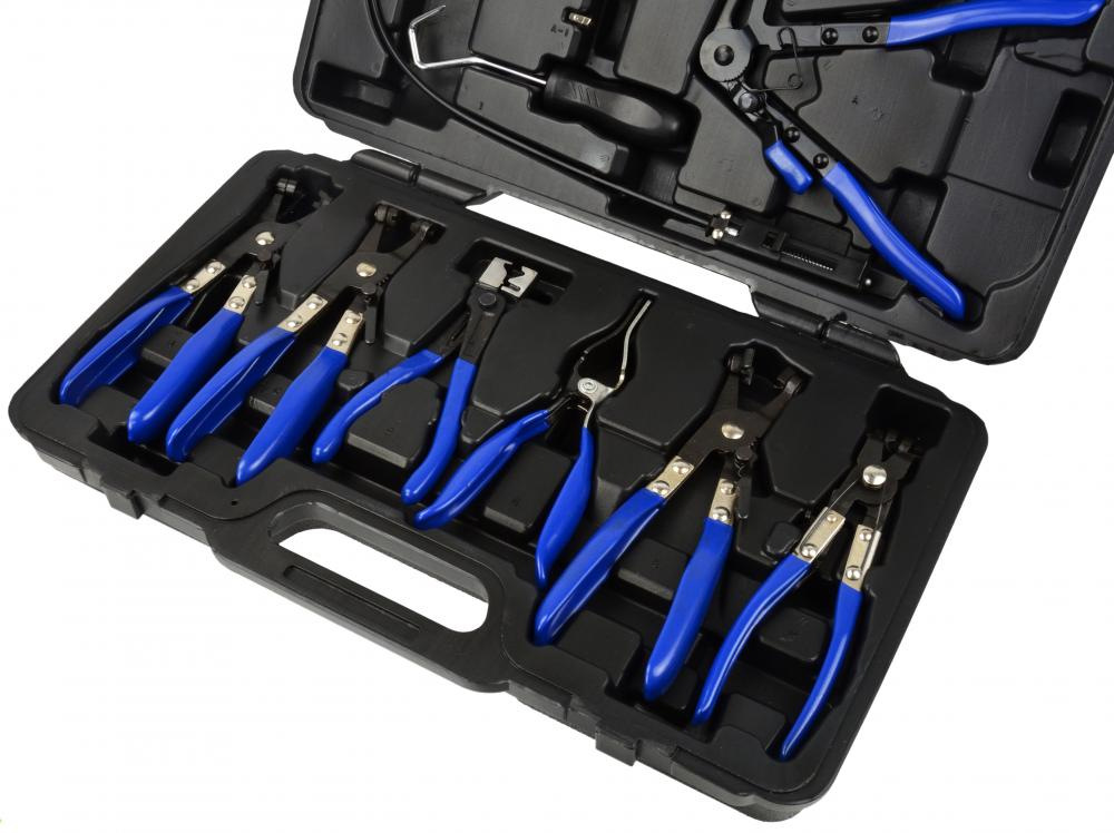 Bohatá sada klieští umožňuje montáž a demontáž pásových svoriek, svoriek krytov spojov, svoriek click a click-r, ako aj klieští na demontáž palivových a vákuových vedení atď.