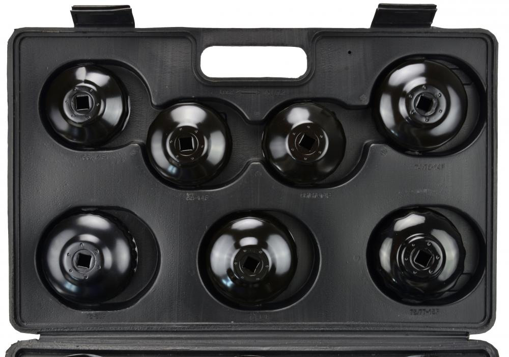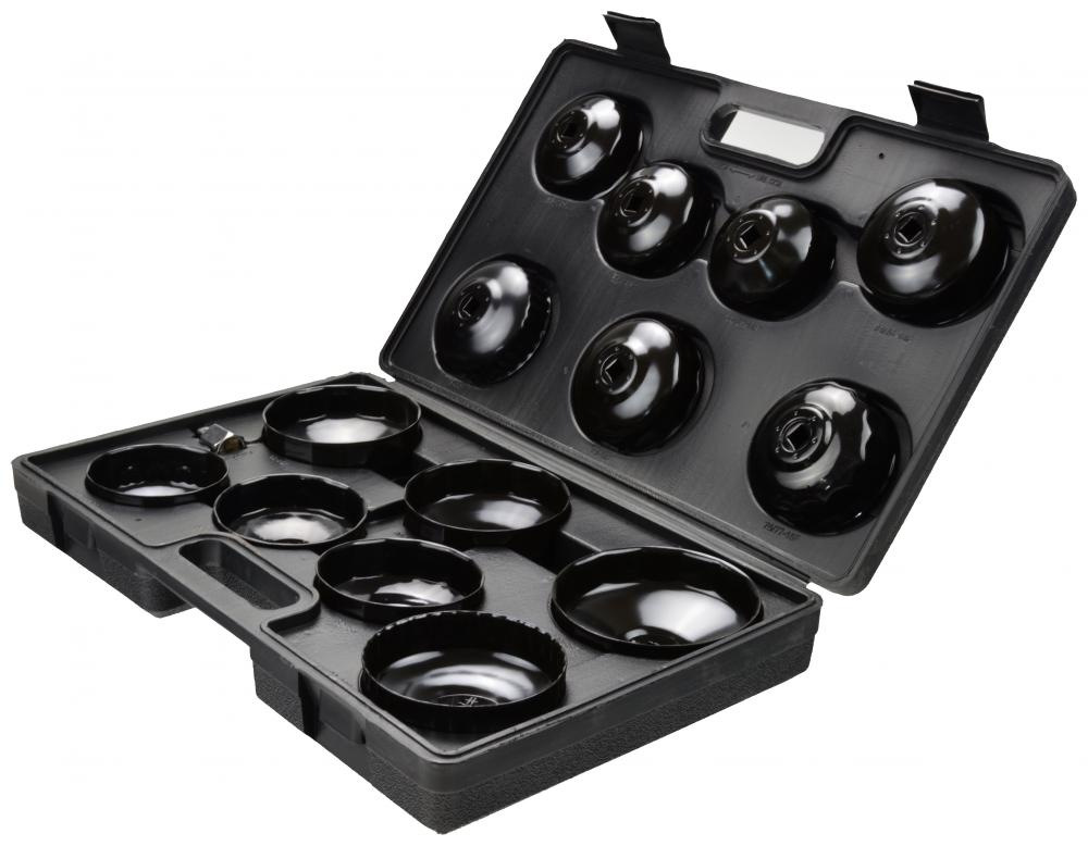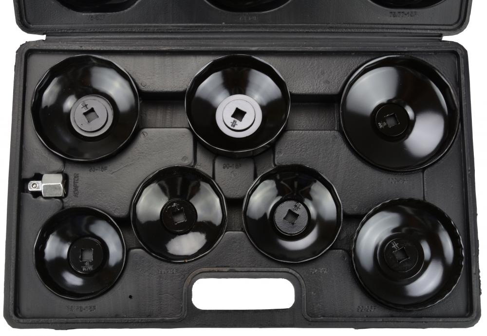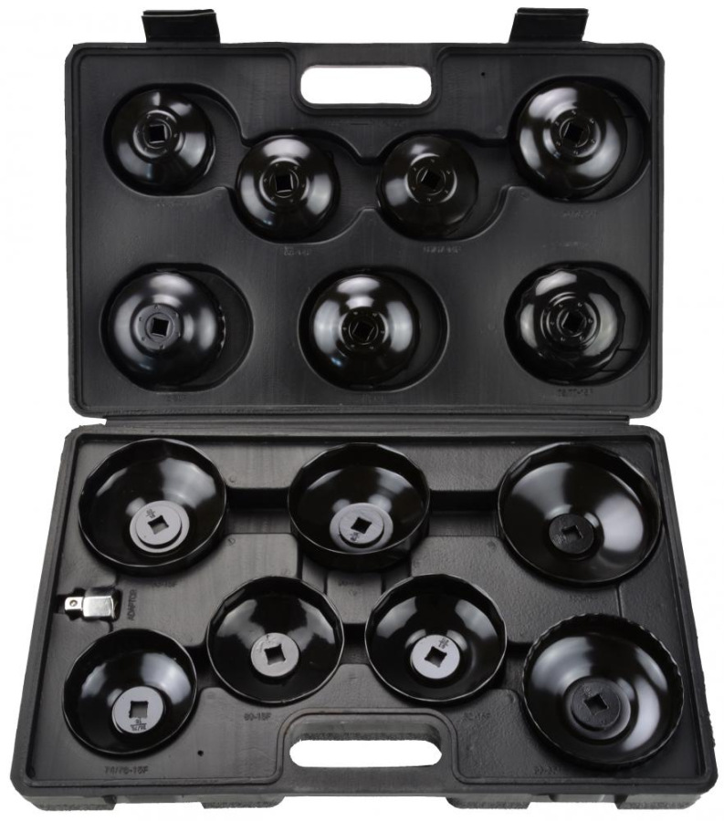 Sada 14 viečok na odskrutkovanie olejových filtrov. Hodí sa pre väčšinu osobných automobilov vyrábaných na európskych, amerických a ázijských trhoch. Oceľové kľúče s práškovým povlakom.
