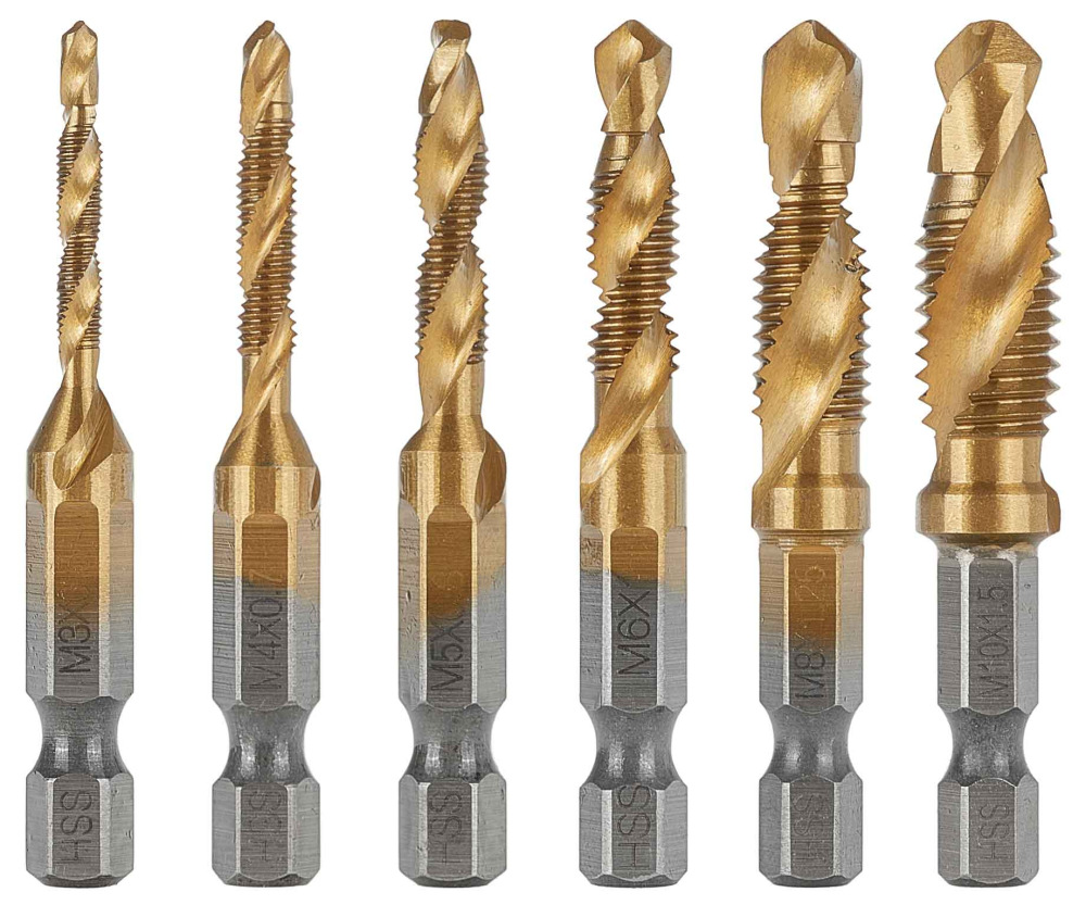 Sada závitníkov je perfektným riešením pre každého, kto si cení presnosť, odolnosť a pohodlie pri práci. Sada obsahuje 6 vrtákov na vytváranie závitových otvorov v jednom kroku - bez nutnosti výmeny nástroja! Nástroje sú vyrobené z vysoko kvalitnej HSS ocele a potiahnuté titánom (TiN), čo výrazne zvyšuje ich odolnosť a odolnosť voči oderu.