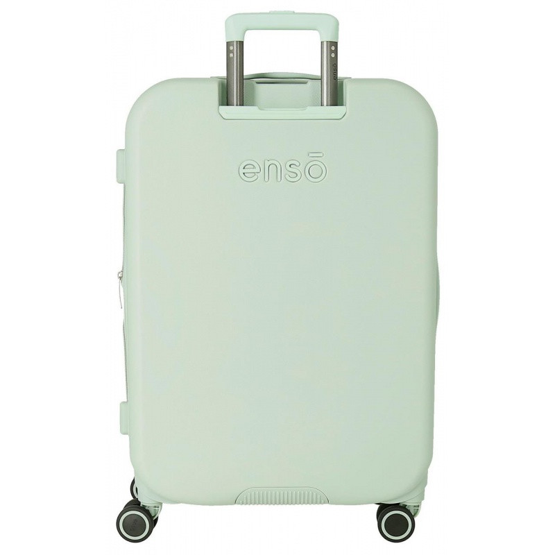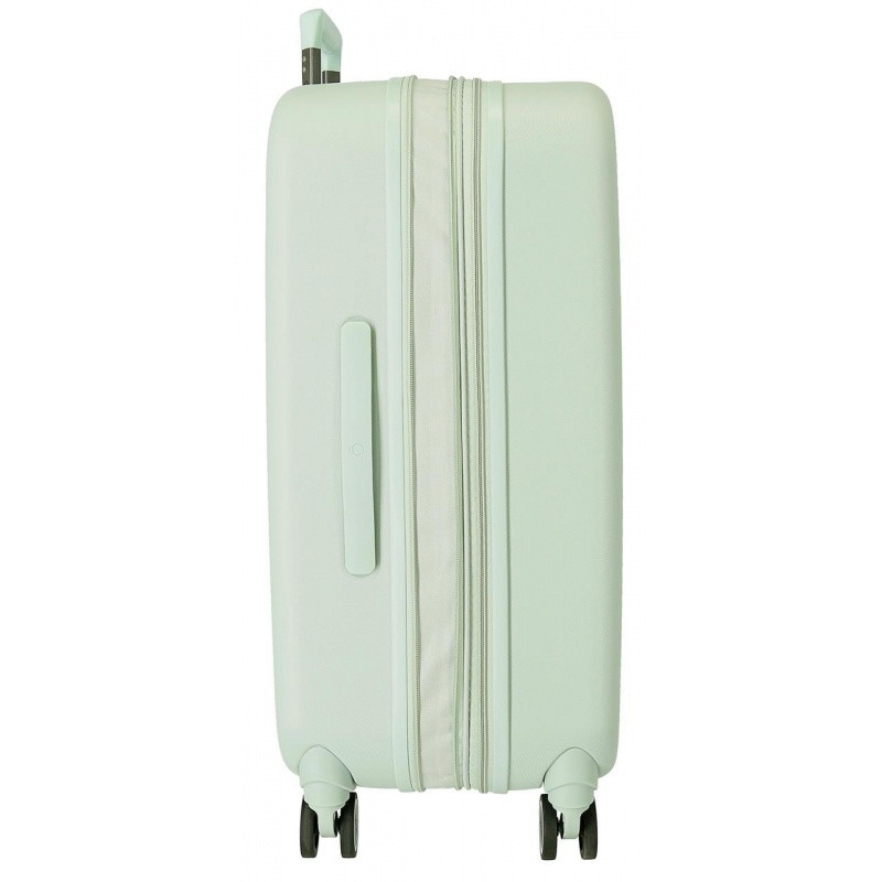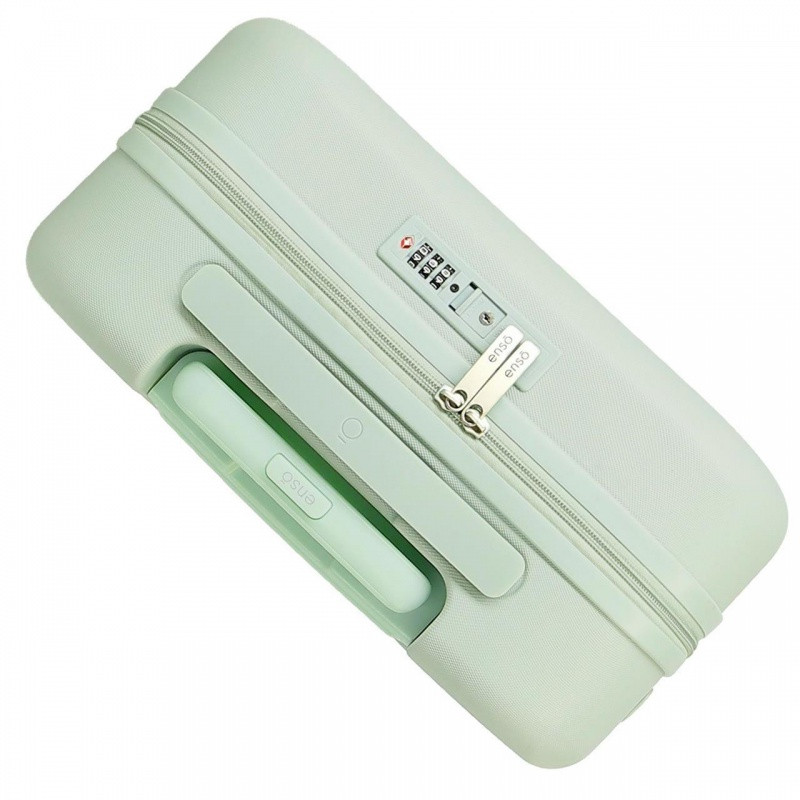 🔹 Elegantné pastelovo zelené prevedenie, ktoré dodáva kufrom jedinečný štýl.