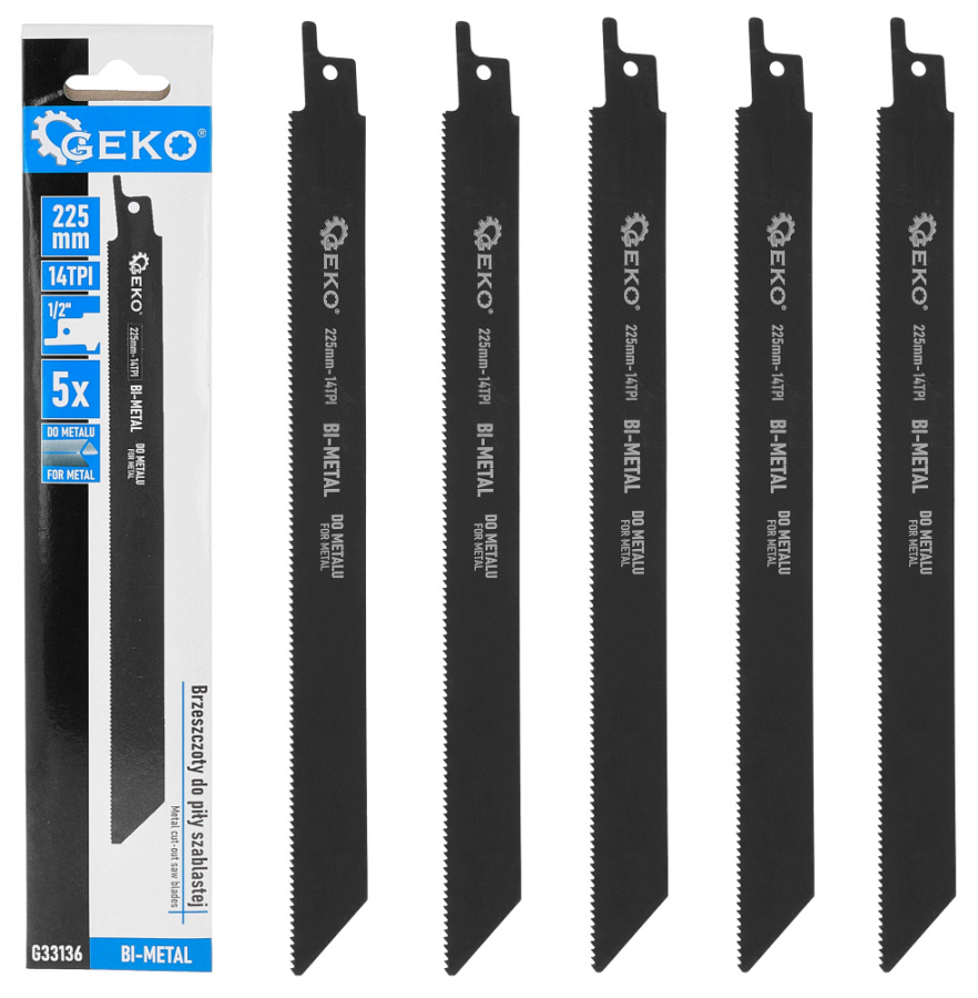 Sada mečových pílových listov na kov Bimetal 225 mm 14 TPI, 5 ks do chvostovej píly, GEKO