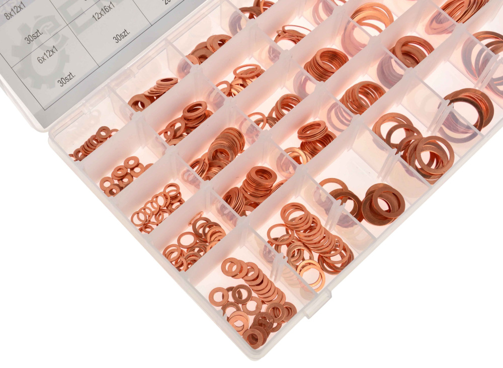 Sada 580 medených podložiek v 29 rôznych veľkostiach.
