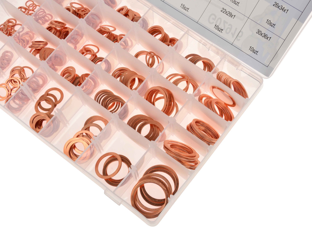 Sada 580 medených podložiek v 29 rôznych veľkostiach.
