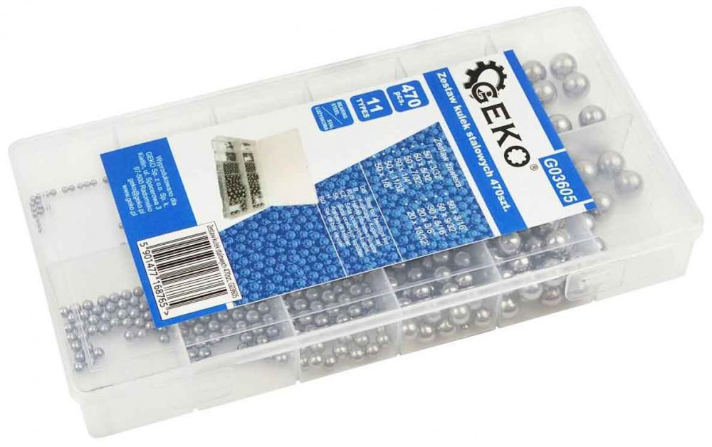 Sada oceľových guličiek, 470-dielna, 2,35-10,32 mm, GEKO