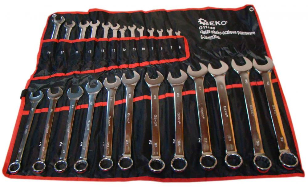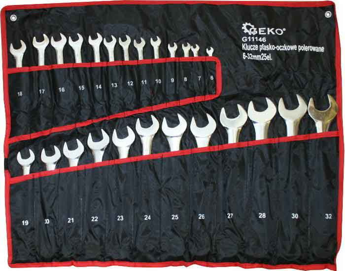Sada očkoplochých kľúčov, 25-dielna, 6-32mm, leštené v plátenom obale, GEKO