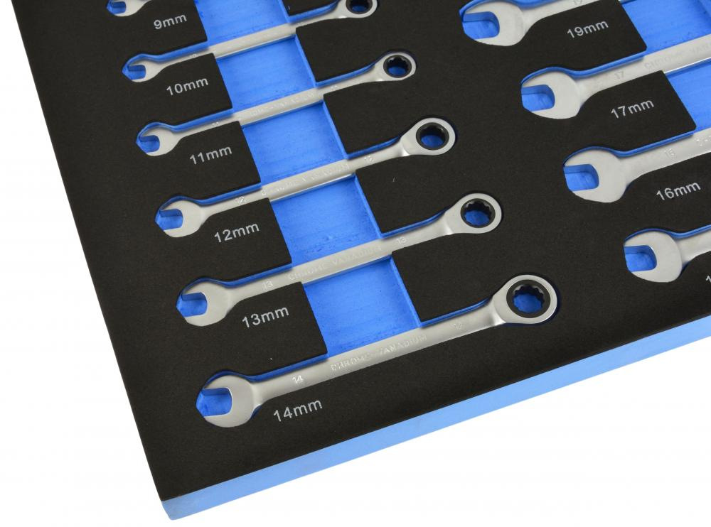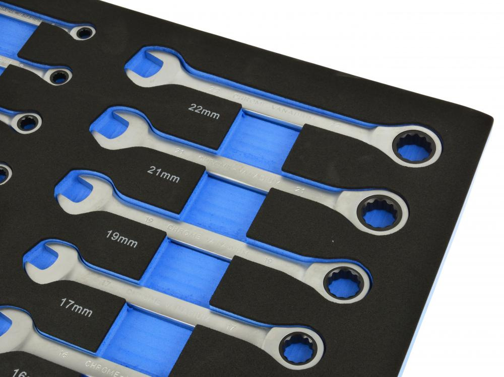 Sada obsahuje kľúče: 8, 9, 10, 11, 12, 13, 14, 15, 16, 17, 19, 20, 21, 22 mm.