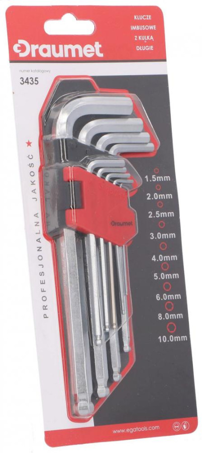 Sada predĺžených imbusových kľúčov 9-dielna 1,5-10 mm s guličkou, EGA