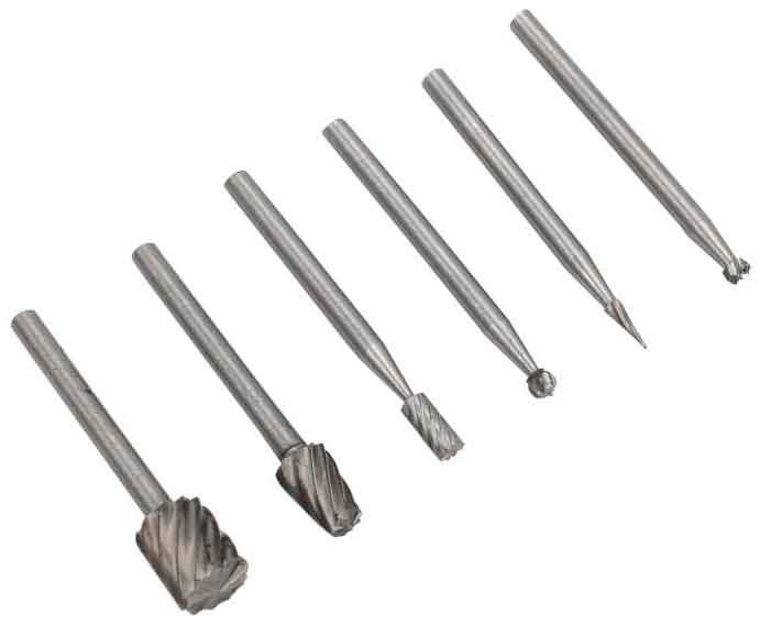 Sada 6 ks stopkových fréz určených na rôzne presné práce v kove, ako je povrchové gravírovanie, odhrotovanie hrán, zrážanie hrán, odhrotovanie po vyrezaní, frézovanie drážok, rozširovanie otvorov, ale aj opravy a modelovanie plechov. . Tieto frézy sú vyrobené z kvalitnej rýchloreznej ocele HSS 4241, ktorá zaisťuje efektivitu a rýchlosť rezania materiálu.