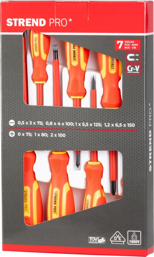 Sada skrutkovačov Strend Pro YF20719, VDE 7 dielna, ploché + Phillips, elektrikárske, 1000V