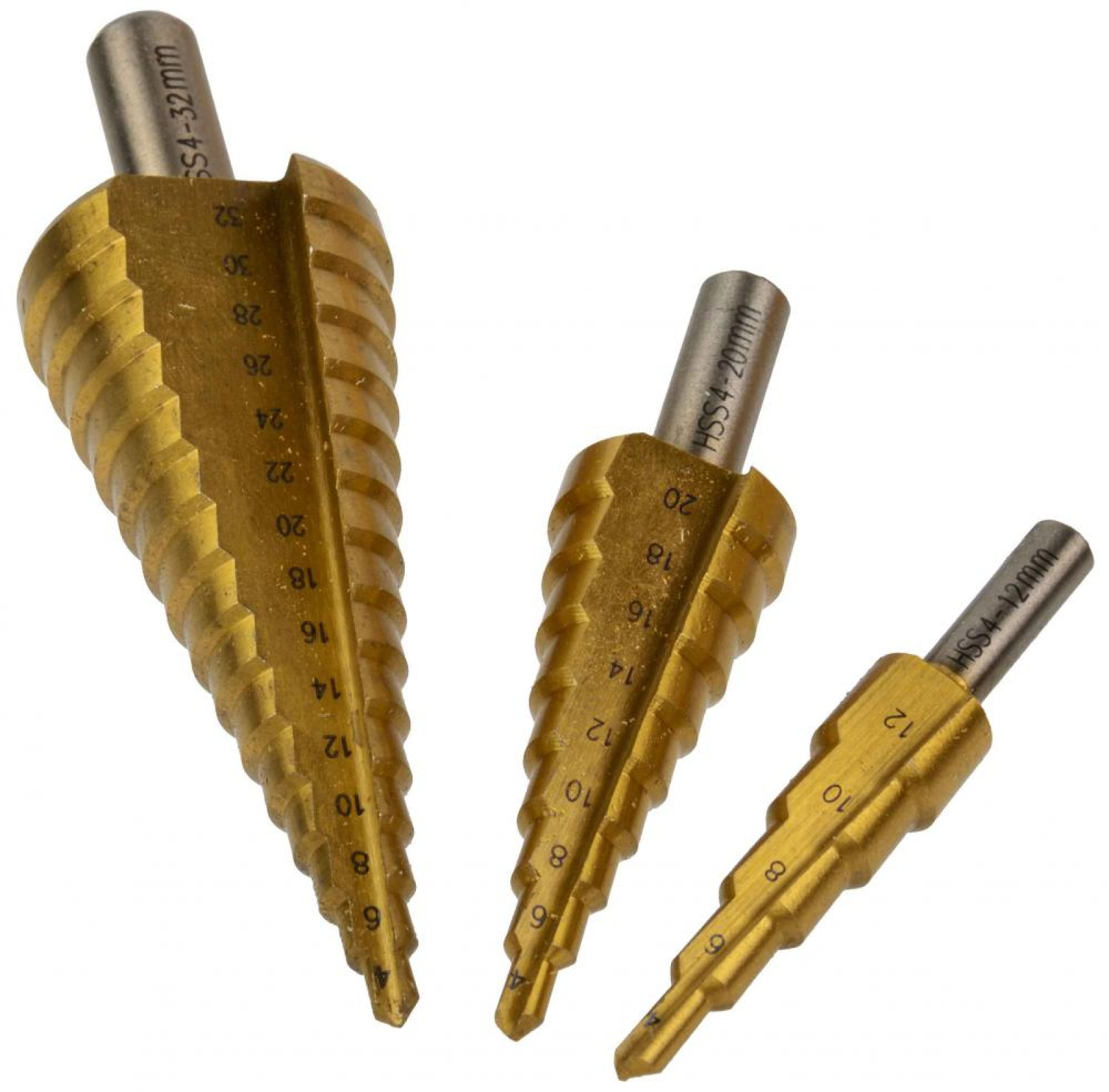 Sada stupňovitých vrtákov 3-dielna, 4-12, 4-20, 4-32 TiN, GEKO