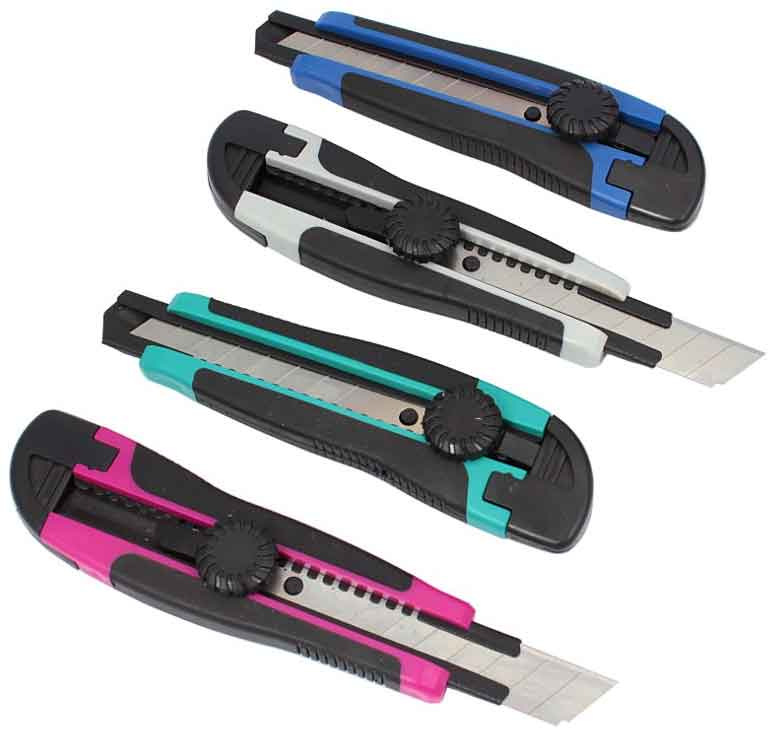 Sada ulamovacích nožov 18 mm v predajnom boxe, 24 ks, s kolieskom, 4 farby, XL-TOOLS