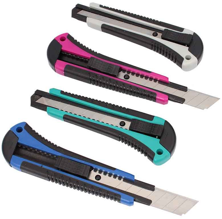 Sada ulamovacích nožov 18 mm v predajnom boxe, 24 ks, s tlačidlom, 4 farby, XL-TOOLS
