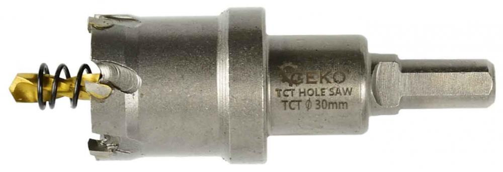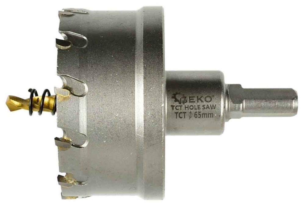 Sada 6 TCT dierových píl na kov vo veľkostiach 22-65 mm. Čepele sú vyrobené zo spekaných karbidov, ktoré sa vyznačujú oveľa väčšou tvrdosťou a odolnosťou voči vysokým teplotám v porovnaní s rýchloreznou oceľou HSS. Určené na vytváranie otvorov s väčším priemerom do ocele, liatiny, neželezných kovov, dreva, plastov atď. Na zvýšenie presnosti rezu bol použitý vodiaci vrták HSS. Na predĺženie životnosti dierových píl sa odporúča použitie chladiaceho maziva.