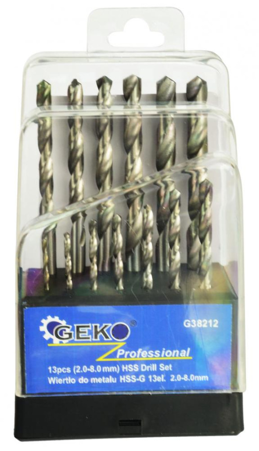 Sada kovových vrtákov vyrobených z HSS (rýchloreznej ocele). Súprava obsahuje 13 HSS vrtákov s veľkosťou od 2,0 do 8,0 mm . Vrtáky s valcovou stopkou. Súprava je určená na vŕtanie do ocele, kovu a iných podobných materiálov.