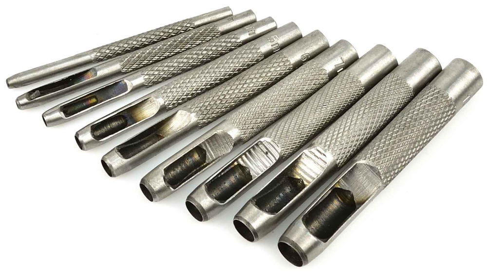 Dierovač do kože je nástroj určený na dierovanie do rôznych materiálov, ako je koža, plast, kartón a pod.Skladá sa z deviatich výsečníkov s priemermi 2,5, 3, 4, 5, 6, 7, 8, 9 a 10 mm. Sú vyrobené z kvalitnej uhlíkovej ocele, ktorá zabezpečuje ich odolnosť a pevnosť. Dierovač je ideálny pre použitie v obuvníctve, kožiarstve, sedliarstve a krajčírstve.